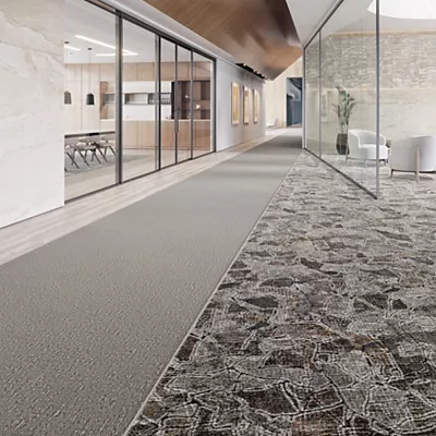 Carpet tile offers durability, versatility, and ease of installation. It is designed to be flexible and made to be sustainable. It can help trap allergens and dust to improve indoor air quality and offer acoustic benefits to reduce noise where needed. It’s great for any commercial space, especially those high-traffic areas.